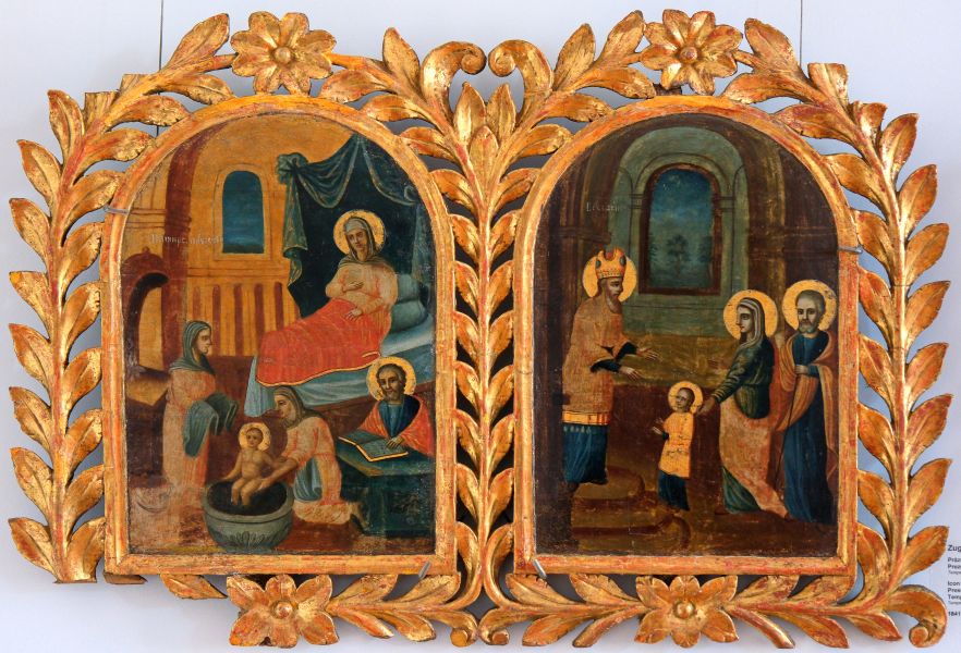 Alte două icoane de o certă valoare artistică au fost semnate de zugravul popular Mihail Leontovici: Maica Domnului cu Pruncul Iisus pe tron (1803) și Sfântul Gheorghe ucigând Balaurul (1806).